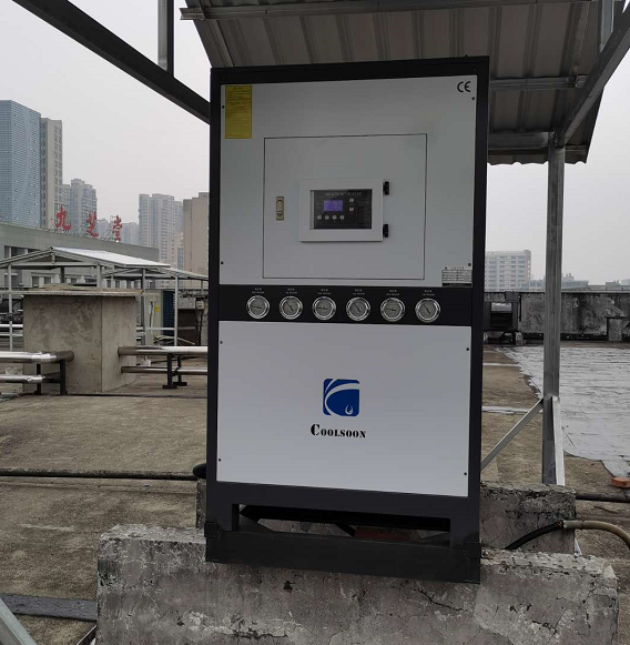 冰水机采用风冷散热,进口温控器,温差为±1℃,进口耐高温油泵,高压力,大流量,采用自制